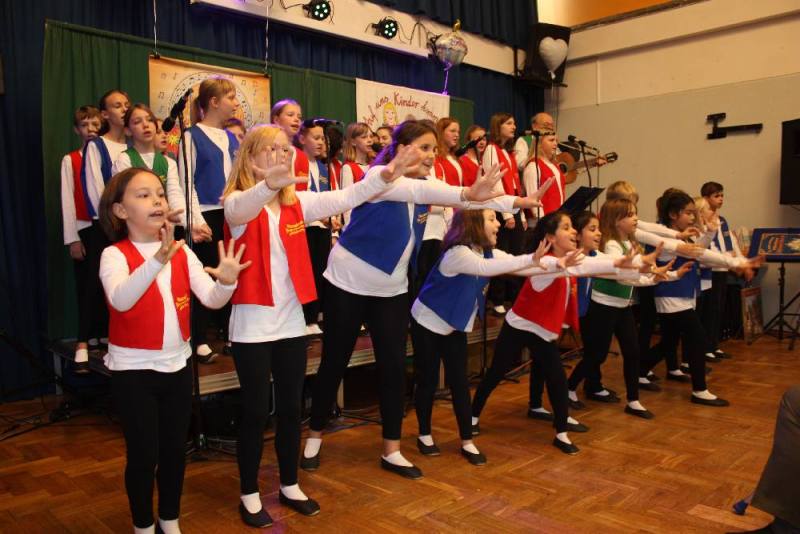 13 neue Chorkinder stellte Herr Engling vor, die beim Medley „Wenn du glücklich bist“ ihren ersten Auftritt bestritten. Vor dem Lied „Hut ab!“ dankte Leonie den Erwachsenen namentlich für ihre Tätigkeiten im und für den Chor. Als ersten Tanz von „Konfetti“ kündigte Viktoria die „Geschichte eines Prinzen“ an.