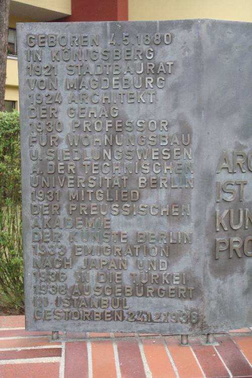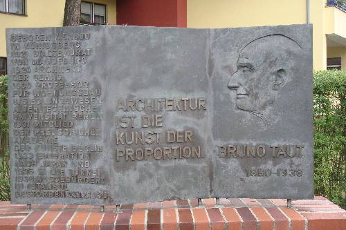 Ein Denkmal für Bruno Taut, eine Reliefplastik auf Klinkerfundament, befindet sich im Entree der Waldsiedlung „Onkel Toms Hütte“ in Zehlendorf, Ecke Argentinische Allee und Riemeisterstraße, welches von Frau Rudolph geschaffen wurde.