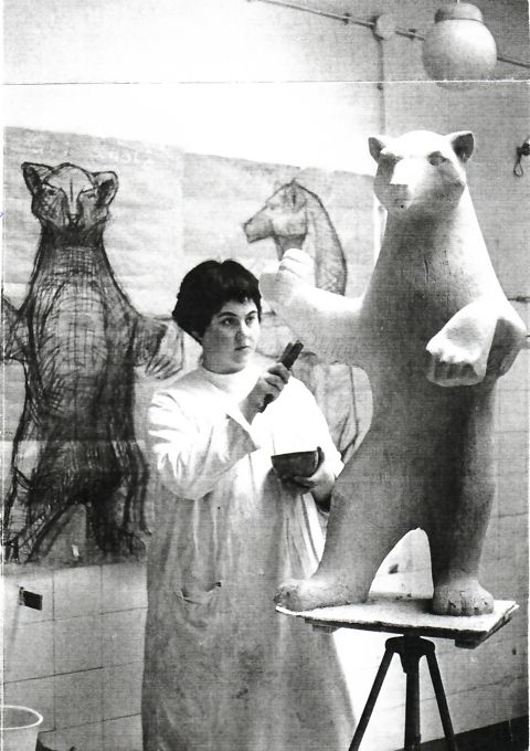 Frau Rudolph sandte mir nachträglich vom Aufbau des Helmstedter Berliner Bären ein Foto von 1960/1961 zu. Der Bär erfuhr noch viele Veränderungen bis er vor dem Auge der Bildhauerin Frau Rudolph bestehen konnte. Die Fellstruktur, die Pfoten, die Schnauze, vieles war noch nicht perfekt und musste verändert werden. Er wurde in der Gießerei Füssel gegossen. Über den Bildhauer, Bronzegießer, Medailleur und Restaurator Hans Füssel berichteten wir schon im III. Quartal 2010.