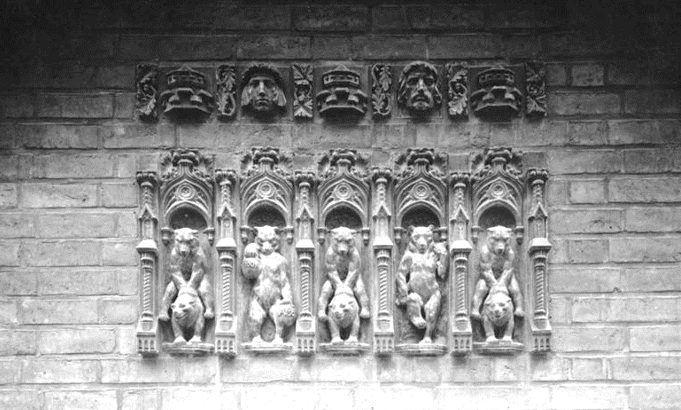 Die Nennung des Bildhauers Hans Latt bezieht sich auf Masken. Diese Bärengruppe wurde um 1900 hat der Bildhauer August Vogel modelliert – angebracht an der Wand zur Straße und am Giebeldreieck. Thomas Hinz teilte uns die für uns neue Information freundlicherweise mit, vielen Dank.