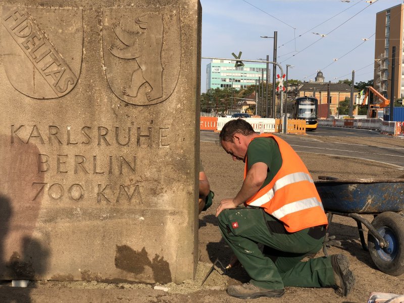 Berliner Meilenstein in Karlsruhe steht wieder an der Durlacher Allee