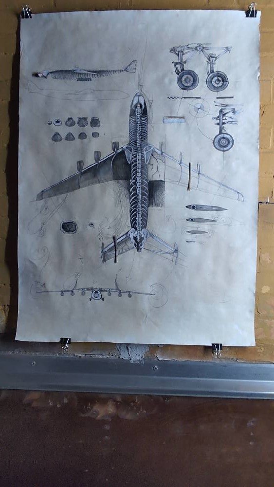 Auf der rechten Seite des Bärenzwingers ist im ehemaligen kleinen Badebecken ebenfalls eine historische Ausgrabungsstätte. Hier geht es um einen Flugzeugabsturz; was ist mit den Menschen und dem Flugzeug passiert? Das Wrack wird versucht in Teilen darzustellen, von den Menschen gibt es keine Spur mehr. Wie alt ist der Fund? Es sind viele Fragen, die im Raum stehen. Ist das Flugzeug abgestürzt oder sind es Reste/ Teile eines Flugzeug-Friedhofs? Es handelt sich um unbekannte Stücke, die als „Wirbelsäule“ wahrgenommen werden können. Wer oder was könnte das sein? Lässt sich daraus noch DNA ziehen, um etwas über diese Menschen zu erfahren?