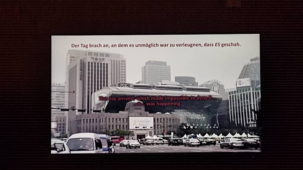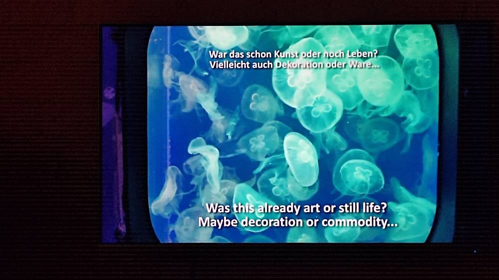 Die Präsentationen von Frau Ulas und Frau Oh-Mock verteilten sich in ihrer Vielfalt über den Gesamtbereich des Bärenzwingers und zeigten diese unter den Bedingungen des Digitalzeitalters. Das neue, nachdenkliche und vielfältige Kunstverständnis richtet sich u.a. auf das Zusammentreffen von „Mensch und Maschine“, das „kybernetische Dispositiv“, „Technologische Singularität“ – Alles irgendwie gekoppelt mit dem schnellen Voranschreiten „Künstlicher Intelligenz“ mit all ihren Überlagerungen, Widersprüchen, positiven sowie negativen Effekten, bis hin zu Überlegungen, wie eine „posthumane Zeit“ aussehen könnte – vereinfacht gesagt: was nach der Apokalypse von uns bleibt“. Zukunftsvisionen, die nicht immer zuversichtlich stimmen! Doch auch diese Vorausschau ist keine Erfindung des 21. Jh. – manche Utopien unserer Vorfahren haben wir selbst real erlebt!!