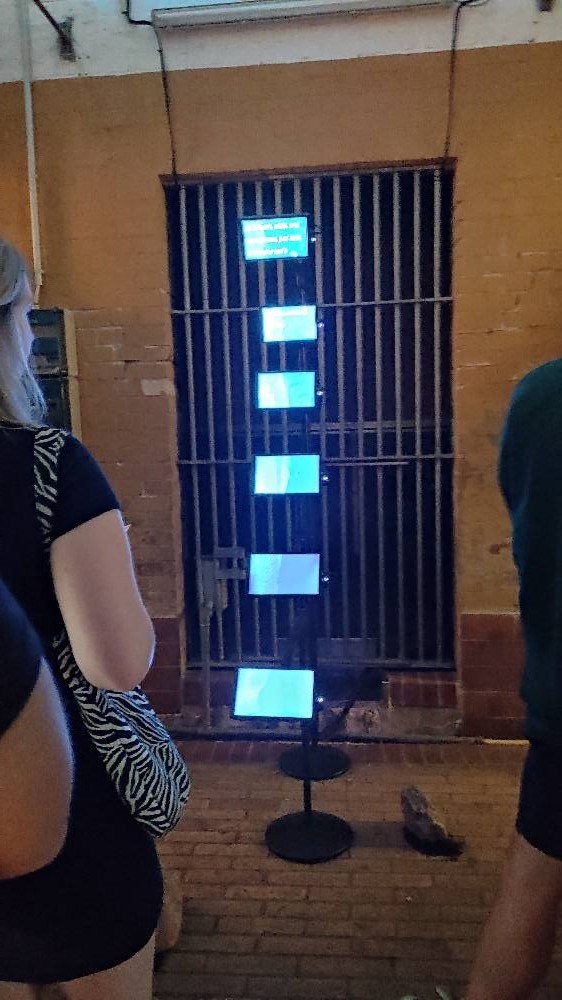 Im Innern des Bärenzwingers gab es mittig mehrere Monitore untereinander, die Audiovisuelle