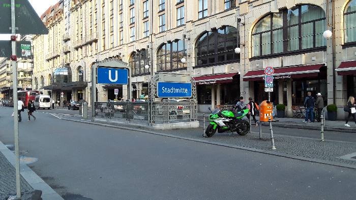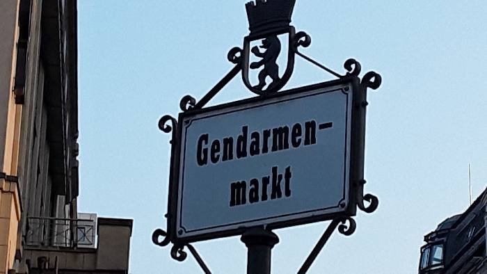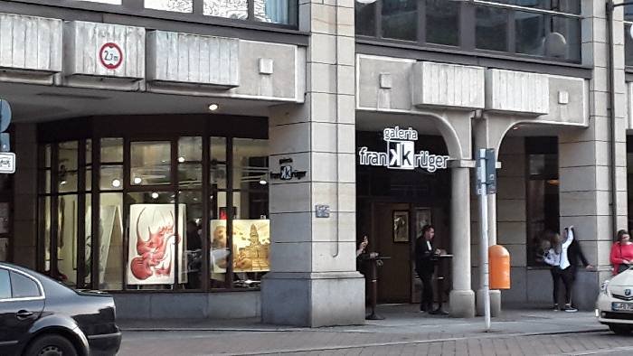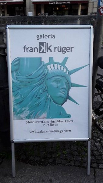 Es war ein pulsierendes Leben in der Stadt und als ich aus der U-Bahn in „Stadtmitte“ ausstieg überraschte mich herrlicher Sonnenschein, zuvor regnete es noch. Die Galeria Frank Krüger befindet sich direkt am Gendarmenmarkt im Gebäude des Hotels Hilton.