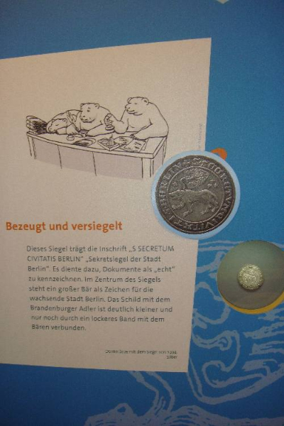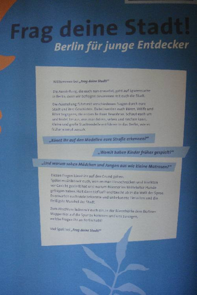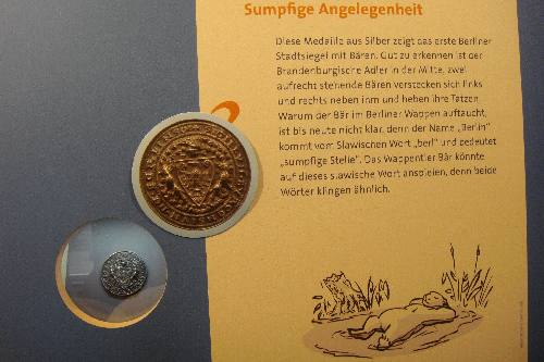 Die Kinder suchen den Berliner Bären in der Ausstellung, Fragen zu Berlin können beantwortet werden und es fällt ihnen leicht, davon konnte ich mich selbst überzeugen. Mit Magnetbildern können sie Wappen, Münzen und Medaillen zuordnen und erfahren so spielerisch viel zu ihrer Stadt, Berlin.