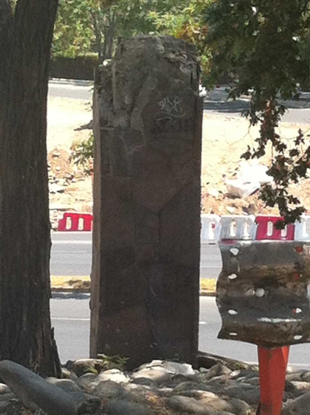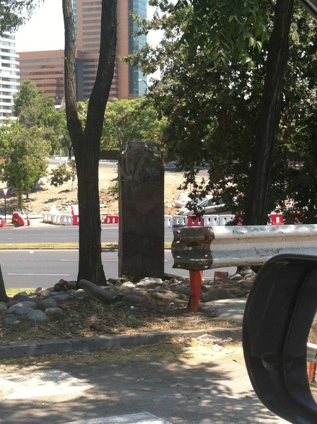 Bei den 2012 beginnenden Arbeiten zu einer weiteren Vergrößerung der Kreuzung kam es irgendwann zu dem Zusammenstoß eines Baufahrzeuges mit der Säule des Bären, welches ihn von seinem Standort stürzte. Der Rest steht in meinem ersten Teil der Geschichte der Rettung des Berliner Bären in Santiago de Chile.