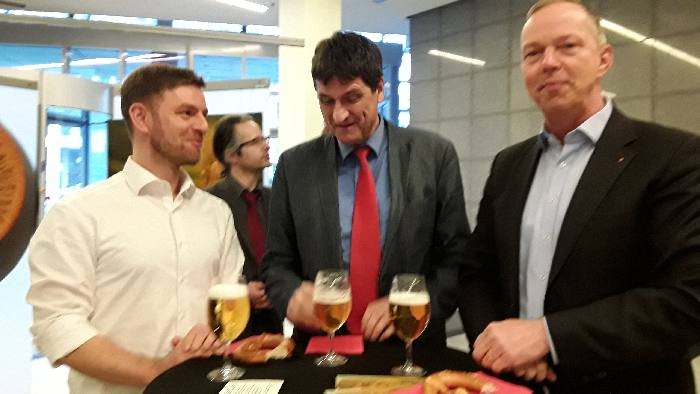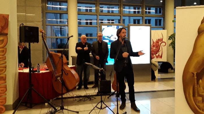 Als erster Redner sprach Dr. Michael Ermrich, Geschäftsführender Präsident des OSV. Er begrüßte die Besucher und Mitarbeiter des OSV und den Künstler Uwe Tabatt, der mit seiner Ausstellung und dem Titel „Ein Euro für Berlin“ nicht ein passenderes Motto hätte wählen können. Die Musik von A la Carte (Jazz & Popp) unterhielt die Besucher und ein Büffet sorgte für das leibliche Wohl.
