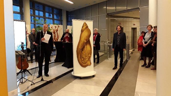 Er wollte seine Rede kurz halten und bat die Besucher, sich mit ihren Fragen zu seinen einzelnen Arbeiten direkt an ihn zu wenden.
