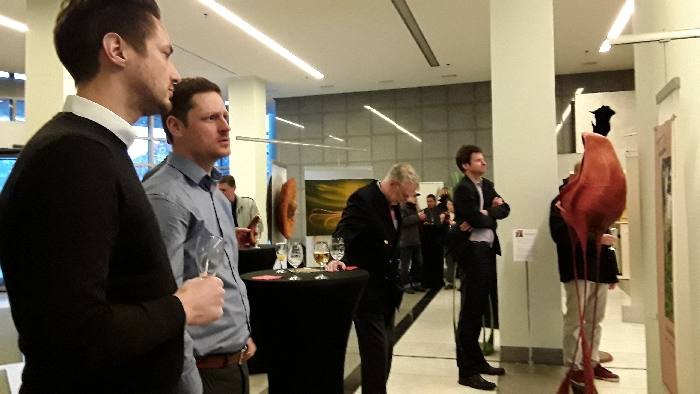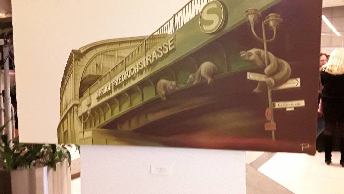 Am Mittwoch, den 21. Februar 2018 fand um 17 Uhr die Ausstellungseröffnung im Foyer des Ostdeutschen Sparkassenverbandes (OSV), Leipziger Straße 51 statt. Passend für den OSV dazu das Bild „Ein Euro für Berlin“ auf der Einladung.