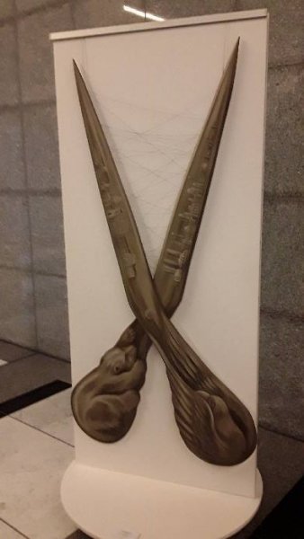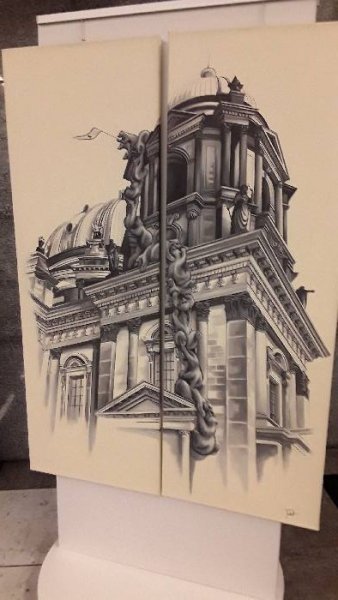 Im Gespräch mit vielen anderen Besuchern und auch Mitarbeitern des OSV hörte ich nur lobende Worte über Uwe Tabatt. Jedes Bild ist bis in die letzte Kleinigkeit durchdacht, egal welches Motto er erschließen wollte und immer ist ein Quentchen Ironie dabei. Eines seiner schönsten neuen Arbeiten, aus dem Thema Wappentiere, ist der Tanz auf einer Vinyl-Schallplatte mit Berliner Bär und Brandenburger Adler. Unter Ihren Füßen die Namen der beiden Hauptstädte der Wappentiere, BERLIN & BRANDENBURG mit Märkischem Sand vermischt der doch nicht so ein fester Untergrund ist, so dass sich die Vereinigung beider Städte wohl noch eine Weile hinziehen wird, oder?