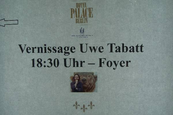 Am Donnerstag, den 31. Oktober 2013, besuchte ich die Vernissage von Uwe Tabatt im Hotel „Palace Berlin“, die wie immer von der starken Ausdruckskraft und dem Ideenreichtum, bei der auch der Berliner Bär und der Brandenburger Adler im Mittelpunkt stehen, geprägt ist.